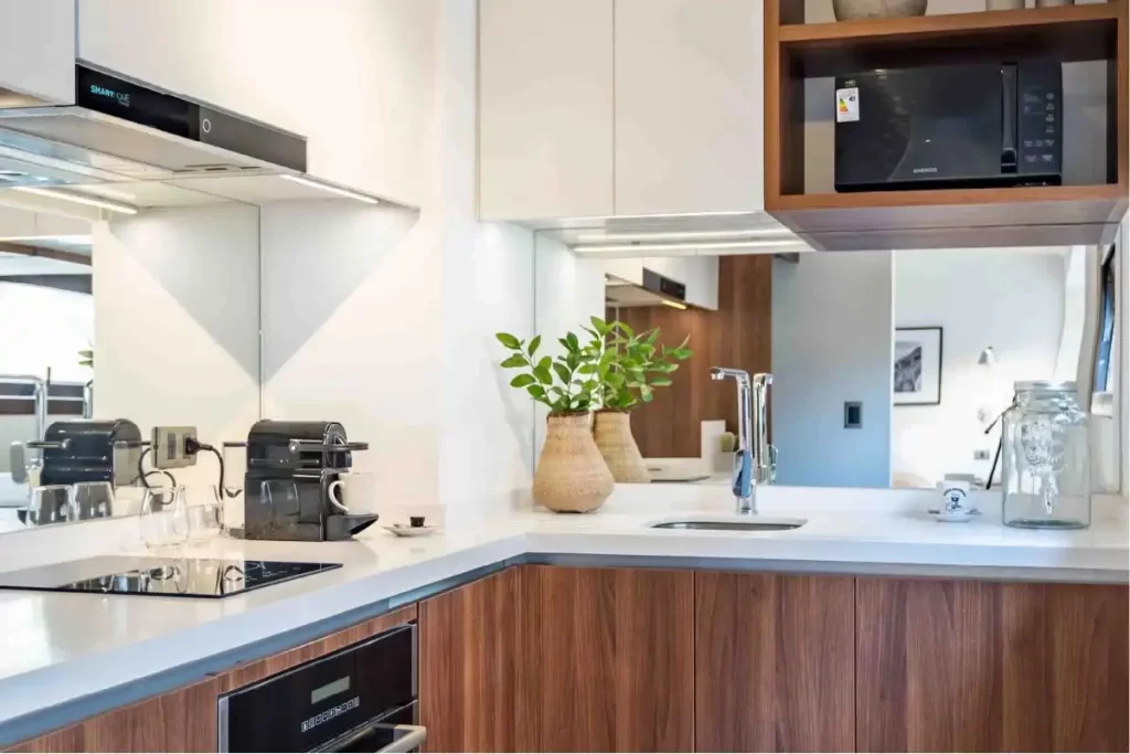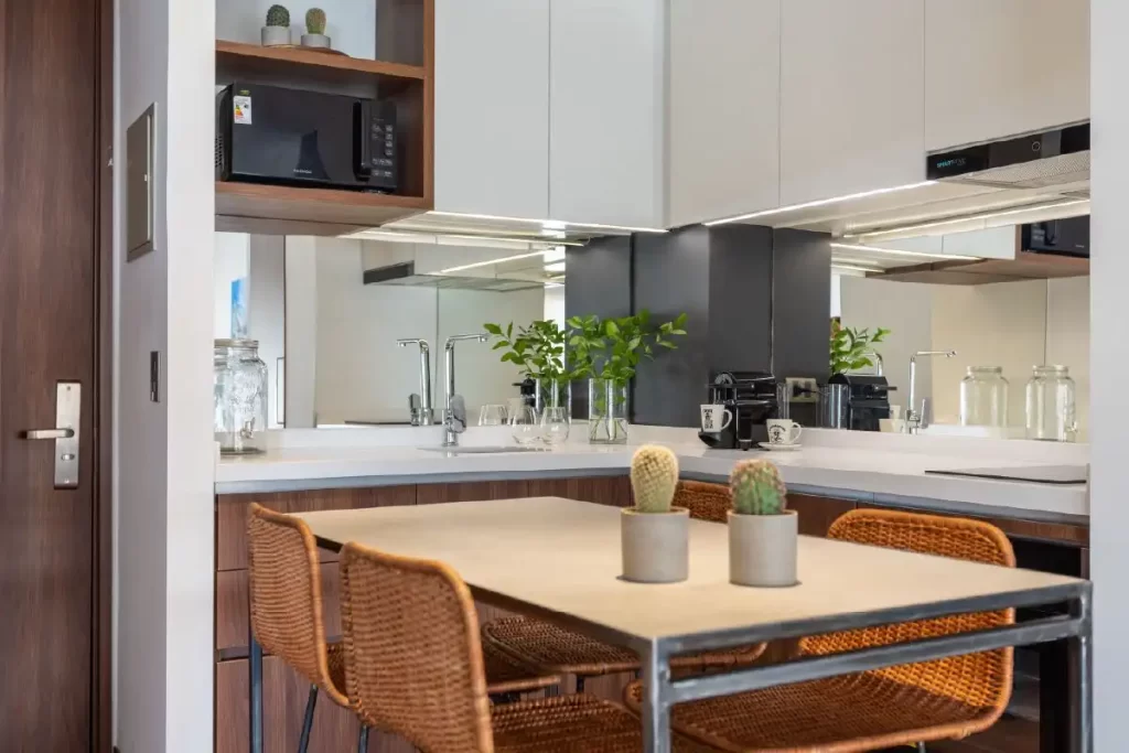 Estes espetaculares apartamentos possuem amplos terraços privativos com vista para a cidade e áreas comuns espaçosas para relaxar e compartilhar. Incluem um quarto grande e cozinha totalmente equipada.
