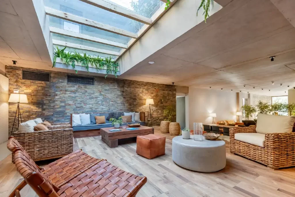 Espacios que complementan tu apartamento; disfruta de la flexibilidad y comodidad de trabajar en el Cowork, un entorno que se adapta a tus necesidades. Inspirado en la naturaleza disfruta de este entorno, ya sea en un cómodo sofá, en una sala de reuniones o en la terraza.